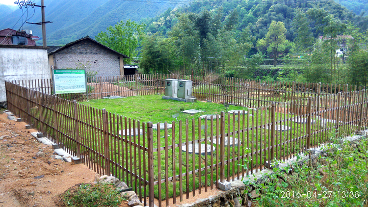 安吉县农村示范整治工程位于孝丰镇潴口溪村委,项目设计水量10m3/天,进水水质参考常规生活污水水质,出水水质参照一级B类标准。