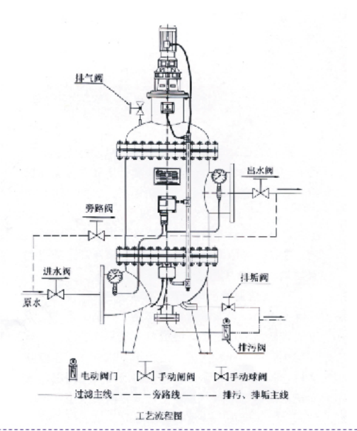 全自动反冲洗精密过滤器属于在线式反冲洗过滤器领域, 是一种在线式过滤器,当滤芯堵塞后,在不影响正常工作的条件下,能利用系统自身的压力自动进行滤芯反冲洗,并恢复过滤功能的自动反冲洗精密过滤器。
